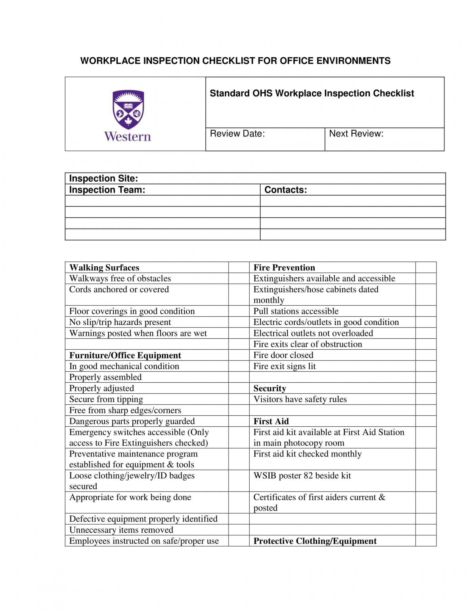 Printable 10 Workplace Inspection Checklist Exampl…